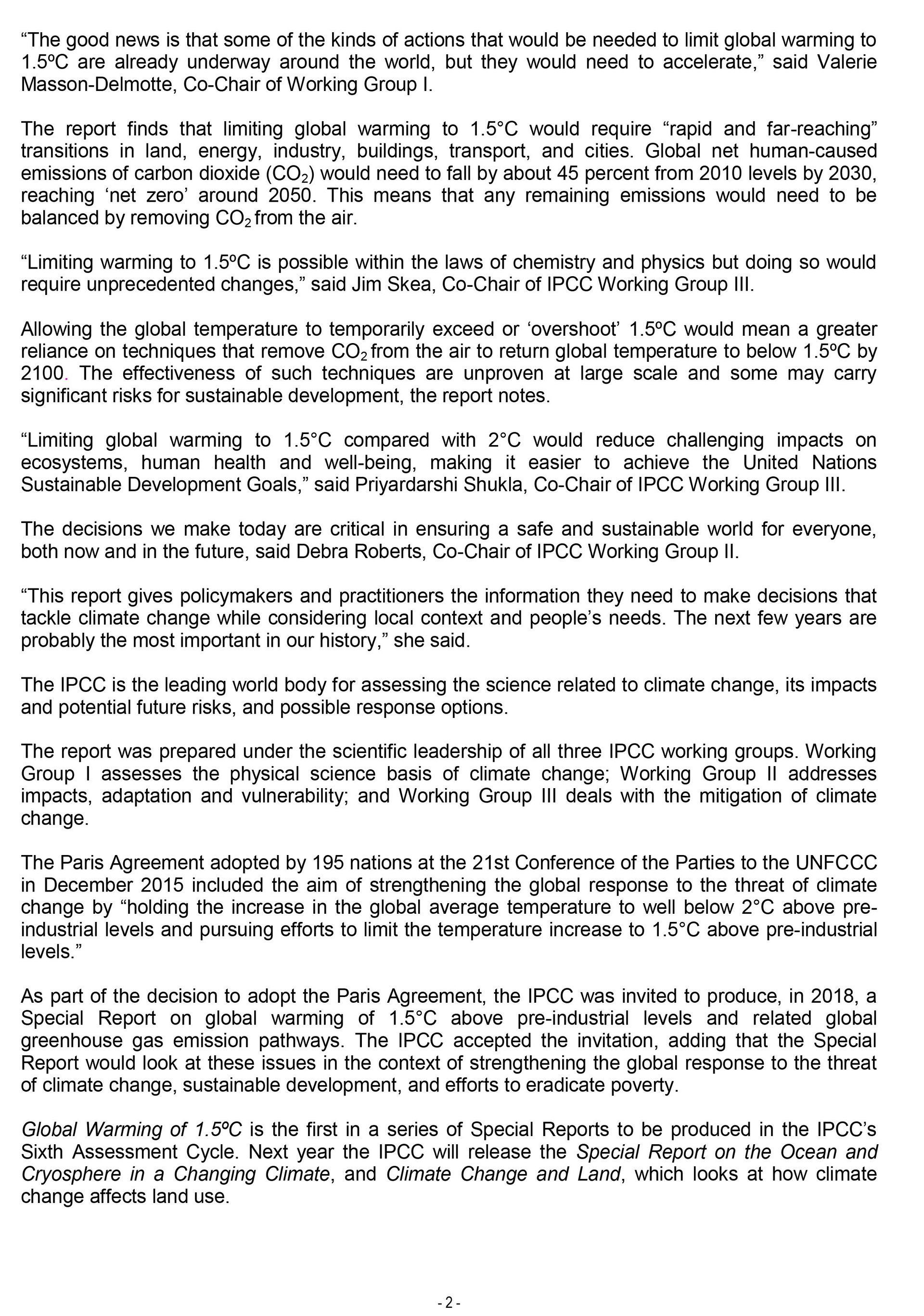 IPCC Press Release - 8th October 2018